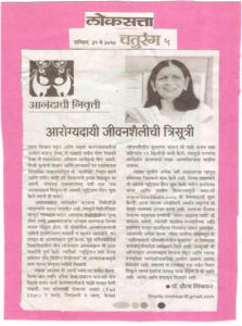 Your lecture on “Arogyachi Trisutri” delivered in our school for our staff was extremely useful. It made all of us aware of the food we should eat, the exercise and other factors that affect our life. Thank you for sharing your knowledge and experience with us.